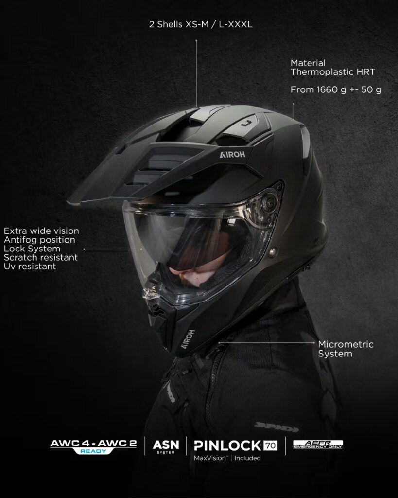 - Tecnologia: ASN – AIROH Sliding Net System e AEFR – AIROH Emergency Fast Release